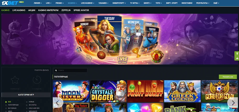 Игровой раздел 1xBet объединяет разработки ведущих мировых провайдеров, среди которых Microgaming, Betsoft, Novomatic, Igrosoft, Amatic, NetEnt и другие студии, известные своим высоким качеством и честностью. Слотосфера платформы регулярно обновляется и предлагает пользователям асортимент, в котором каждый найдёт что-то по душе — от классики до самых современных видеослотов с инновационными механиками.