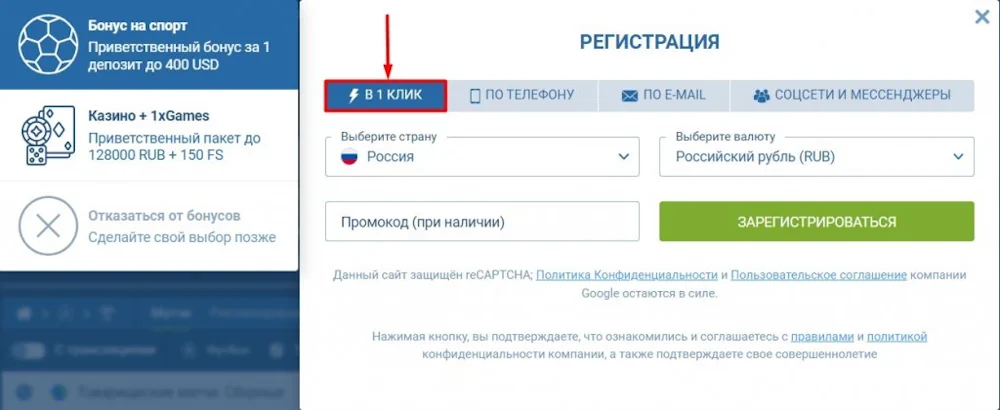 Это самый быстрый способ открыть доступ к функционалу сайта. Пользователю нужно только выбрать страну проживания, установить валюту счёта и при наличии — ввести промокод. После подтверждения регистрации можно сразу переходить к ставкам и играм, а недостающие личные данные заполнить позже. Промокоды находятся на партнёрских ресурсах, форумах и страницах в социальных сетях и помогают активировать дополнительные бонусы.